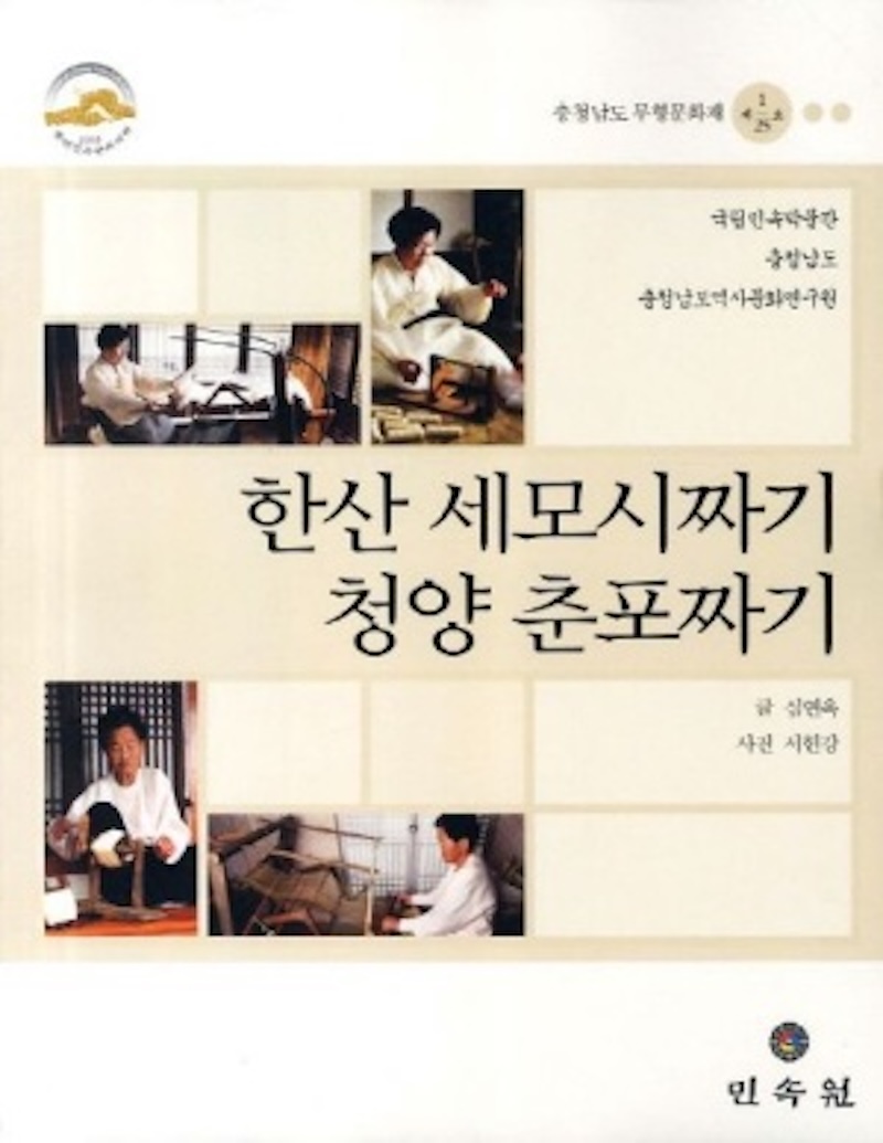 원문목차 | 한산 세모시짜기 충청남도 무형문화재 기록도서를 발간하며 축사 1장 모시의 역사 2장 모시의 특성과 재배 3장 모시 방적(紡績)과 도구 4장 날실과 씨실 준비 5장 모시짜기와 베틀 6장 한산 세모시짜기와 전승현황 미주 참고문헌 청양춘포짜기 1장 춘포의 역사 2장 방적과 도구 3장 날실과 씨실 준비 4장 제직하기 5장 춘포띄우기 6장 춘포짜기와 전승현황 미주 참고문헌 |