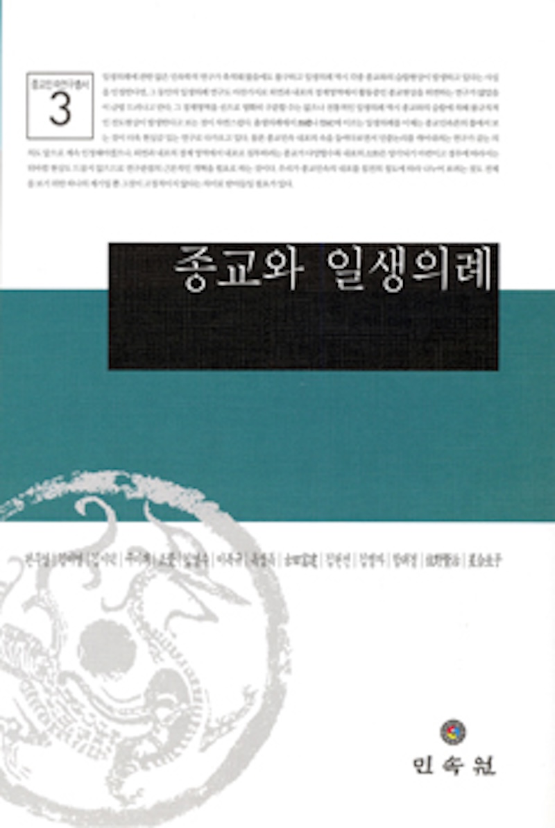 간략 해제 | 일상의례에 관한 많은 민속학적 연구가 축적돼 왔음에도 불구하고 일상의례 역시 각종 종교와의 습합현상이 발생하고 있다는 사실을 인정한다면, 그 동안의 일생의례 연구도 마찬가지로 외연과 내포의 경계영역에서 활동 중인 종교현상을 외면하는 연구가 많았음이 금방 드러나고 만다. 그 경계영역을 선으로 명확히 구분할 수는 없으니 전통적인 일생의례 역시 종교와의 습합에 의해 불규칙적인 전도현상이 발생한다고 보는 것이 자연스럽다. 출생의례에서 상례나 제혼에 이르는 일생의례를 이제는 종교민속론의 틀에서 보는 것이 더욱 현실감 있는 연구로 다가오고 있다. 물론 종교민속 내포의 속을 들여다보면서 민중논리를 캐어내려는 연구가 갖는 의의도 앞으로 계속 인정해야겠으나, 외연과 내포의 경계영역에서 내포로 침투하려는 종교가 다양할수록 내포의 고형은 망각되기 마련이고 경우에 따라서는 뒤바뀜 현상도 드물지 않으므로 연구관점의 근본적인 개혁을 필요로 하는 것이다. 우리가 종교민속의 내포를 침전의 정도에 따라 나누어보려는 것도 전체를 보기 위한 하나의 계기일 뿐 그것이 고정적이지 않다는 의미로 받아들일 필요가 있다. |