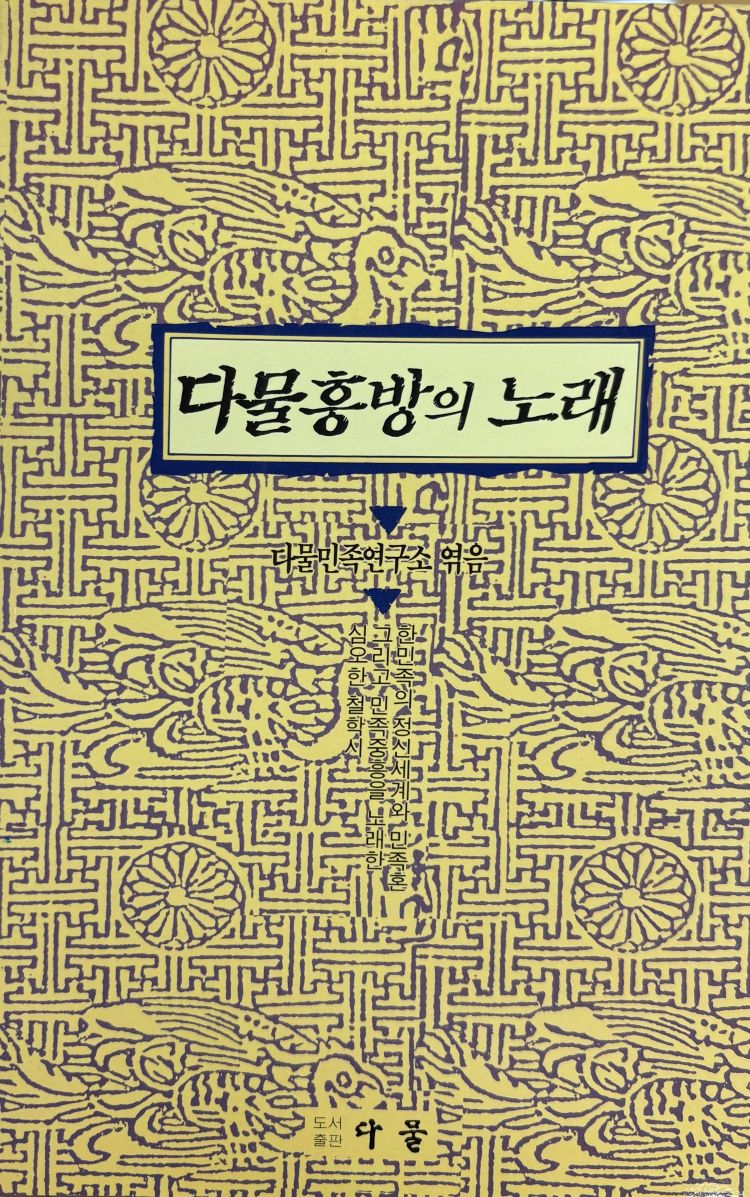 도서명(원문)다물흥방의 노래 도서명(국문)다물흥방의 노래 도서명(영문명) - 도서명(라틴자 전사) - 언어 한국어 저자 다물민족연구소 출판사 다물 출판지 서울 출판년도 1993년 자료유형 단행본 주제 조선어 소장기호 199 ISBN - 키워드 - 원문목차 머리말 1. 어록(語錄)편 2. 시(詩)편 3. 비문(碑文)편 국문목차 - 간략 해제 "한민족의 정신세계와 민족혼, 민족중흥을 노래한 심오한 철학서"라고 소개되고 있다.